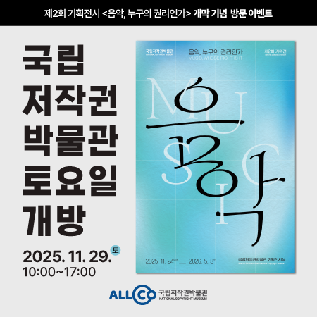 국립저작권박물관 제2회 기획전시 <음악, 누구의 권리인가> 개막 기념 방문 이벤트 안내 (토요일 개방)